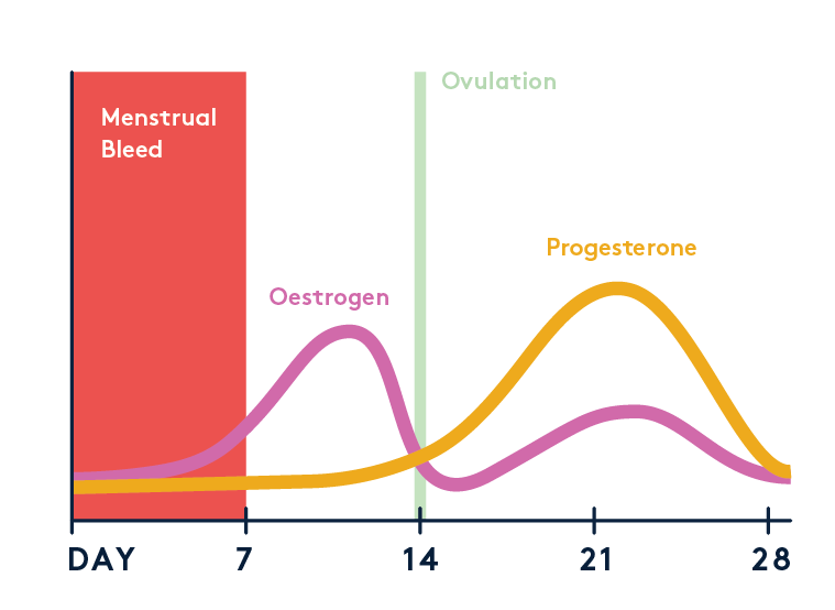 Once ovulation has happened, the follicle turns into a corpus luteum and starts producing oestrogen and progesterone. Progesterone runs the luteal show, peaking halfway and keeping your uterine lining thick. Although we don't know the specific mechanism involved, it’s assumed that this spike in progesterone also causes the onset of PMS symptoms, such as mood swings, acne, bloating, constipation and headaches.