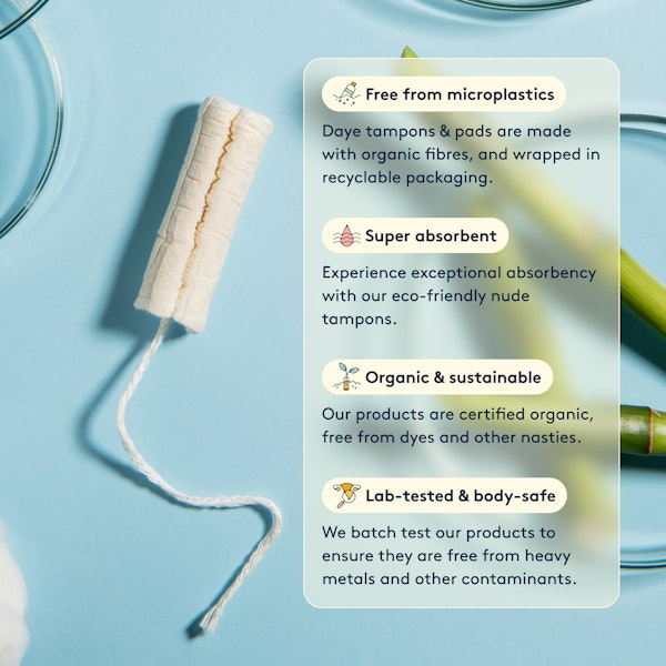 Daye tampons & pads are made with organic fibres, and wrapped in recyclable packaging.