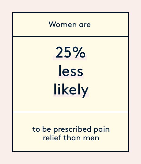 - Women are more likely to be prescribed sedatives, rather than painkillers, because our pain is dismissed as perceived.